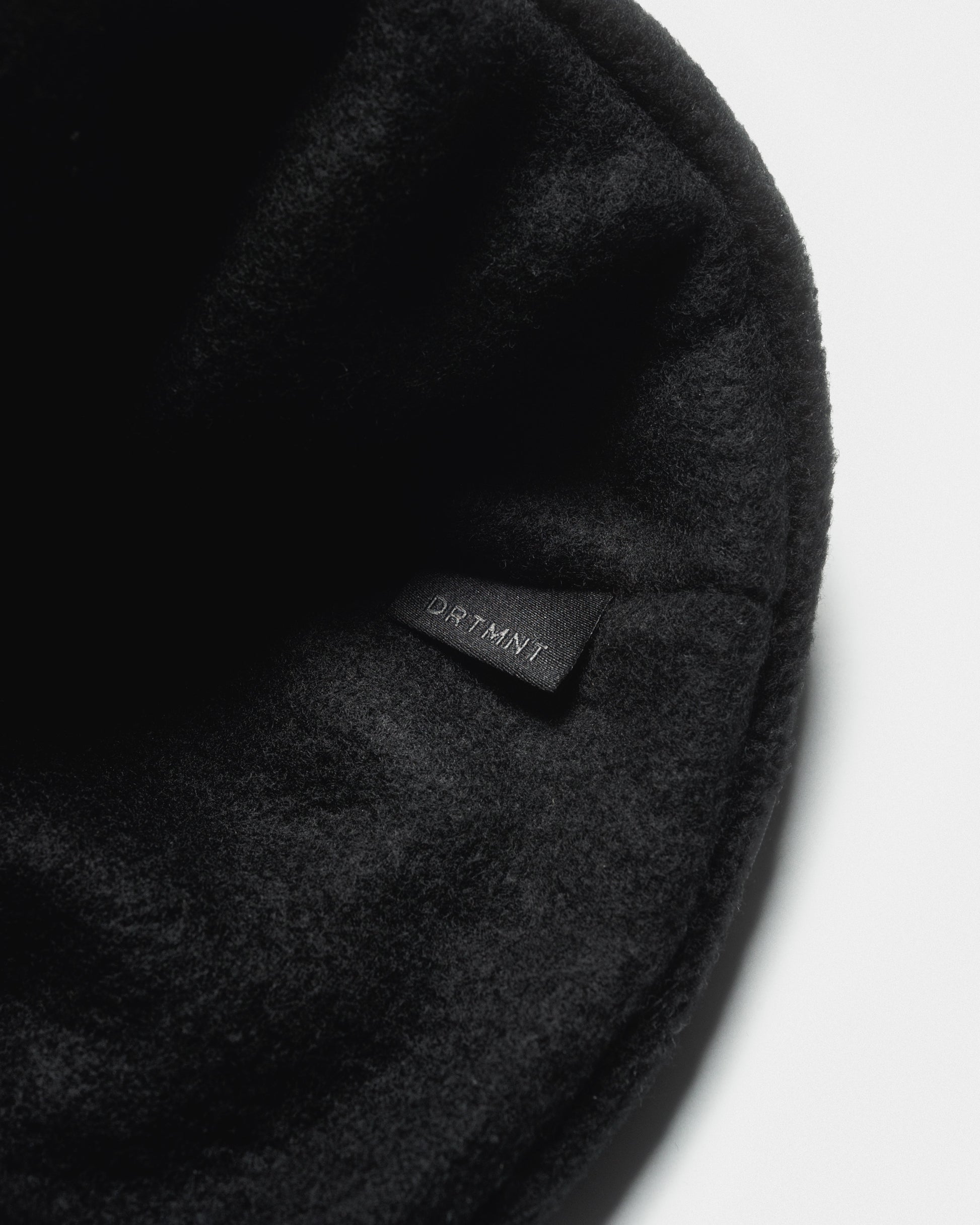 Featuring a medium-weight polyester fleece it is soft and insulating, while also offering some slight stretch for a comfortable fit. Exposed seams are meant to be worn on the outside and brim is cuffed. Woven DRTMNT label on the inside.